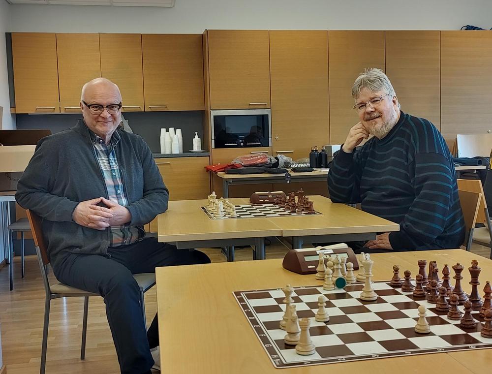 Kuva 3 Håkan Ekström ja Jouni Kainukangas aloittamassa pelin 60+60 min. Håkke voitti tällä kertaa Jounin 1-0